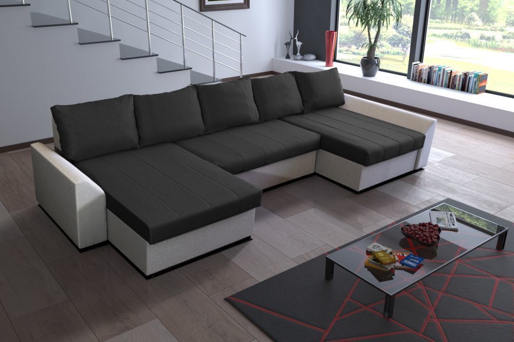 Стильный п-образный угловой диван. Идеально подойдет для больших залов. Имеются 3 больших бельевых ящика. Легко раскладывается.